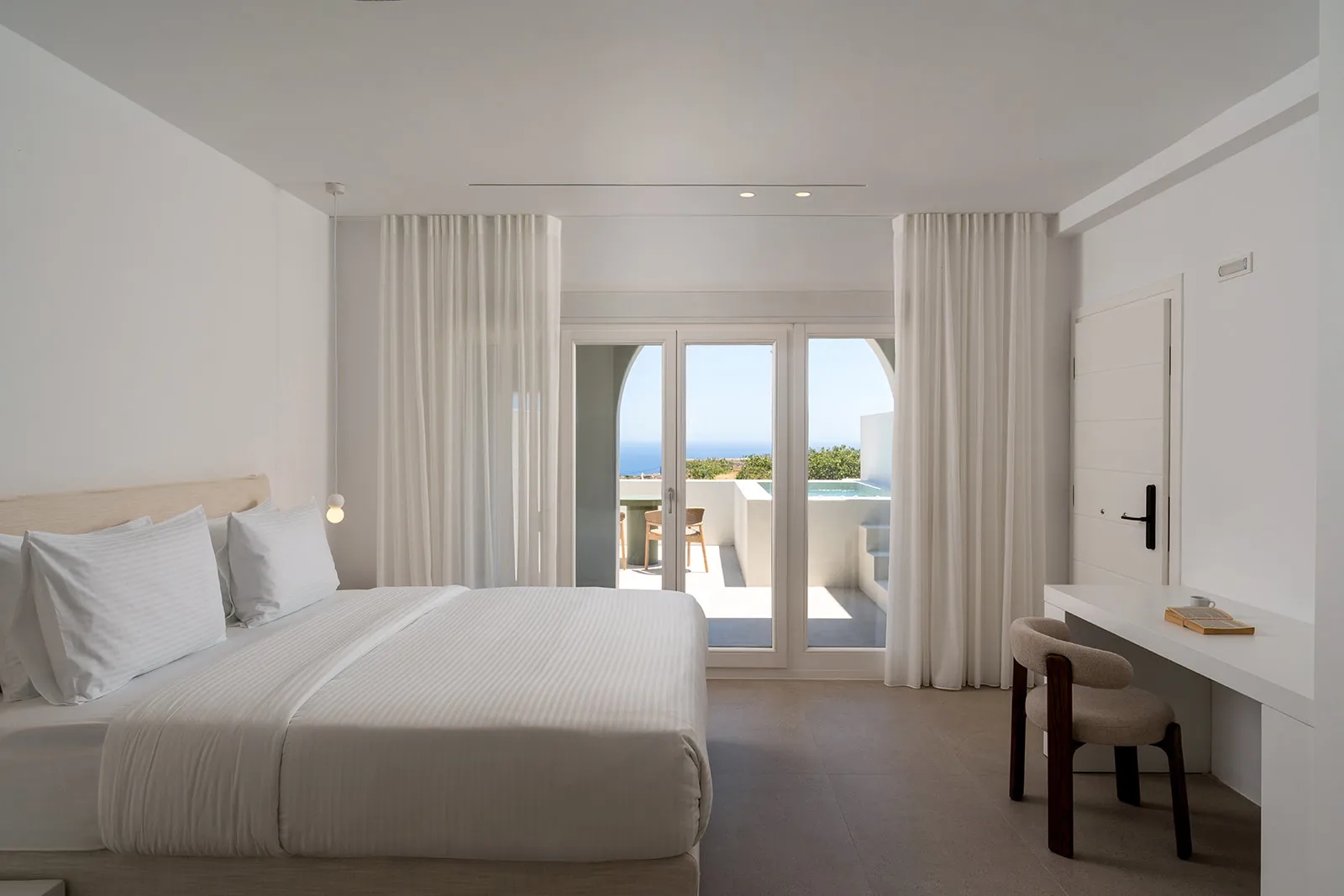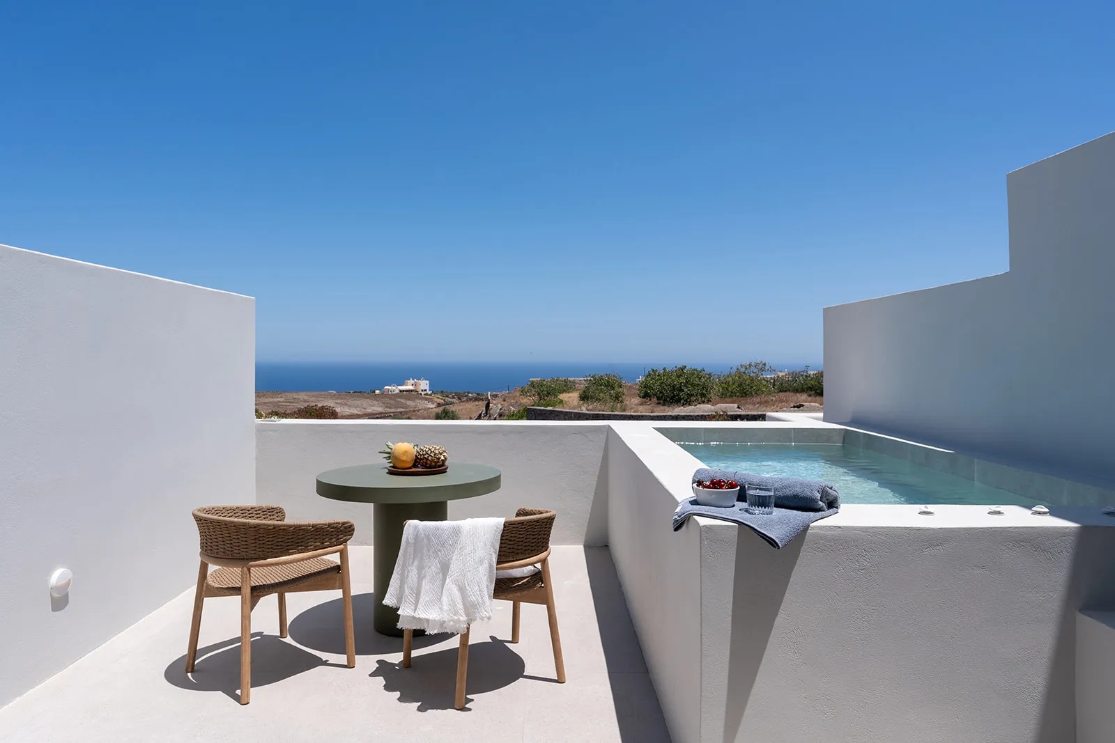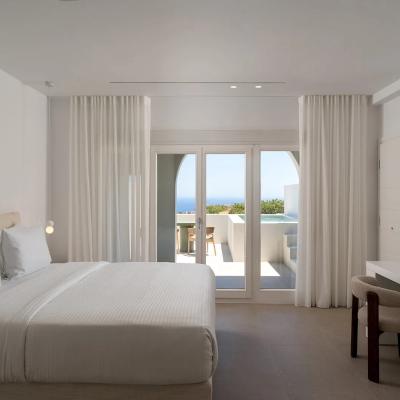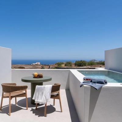 The Deluxe Apartment with Hot Tub of Lilium Homes is a spacious and elegant residence, perfect for couples looking for a refined stay. It features an open-plan bedroom with a stylish sitting area, a contemporary bathroom, and a fully equipped kitchen, all thoughtfully designed for comfort and style. The highlight of the apartment is its private terrace with an outdoor hot tub, where you can enjoy breathtaking sunrise and sea views. Ideal for up to 2 guests, the Deluxe Apartment offers a memorable and relaxing holiday experience in Santorini.