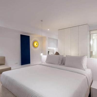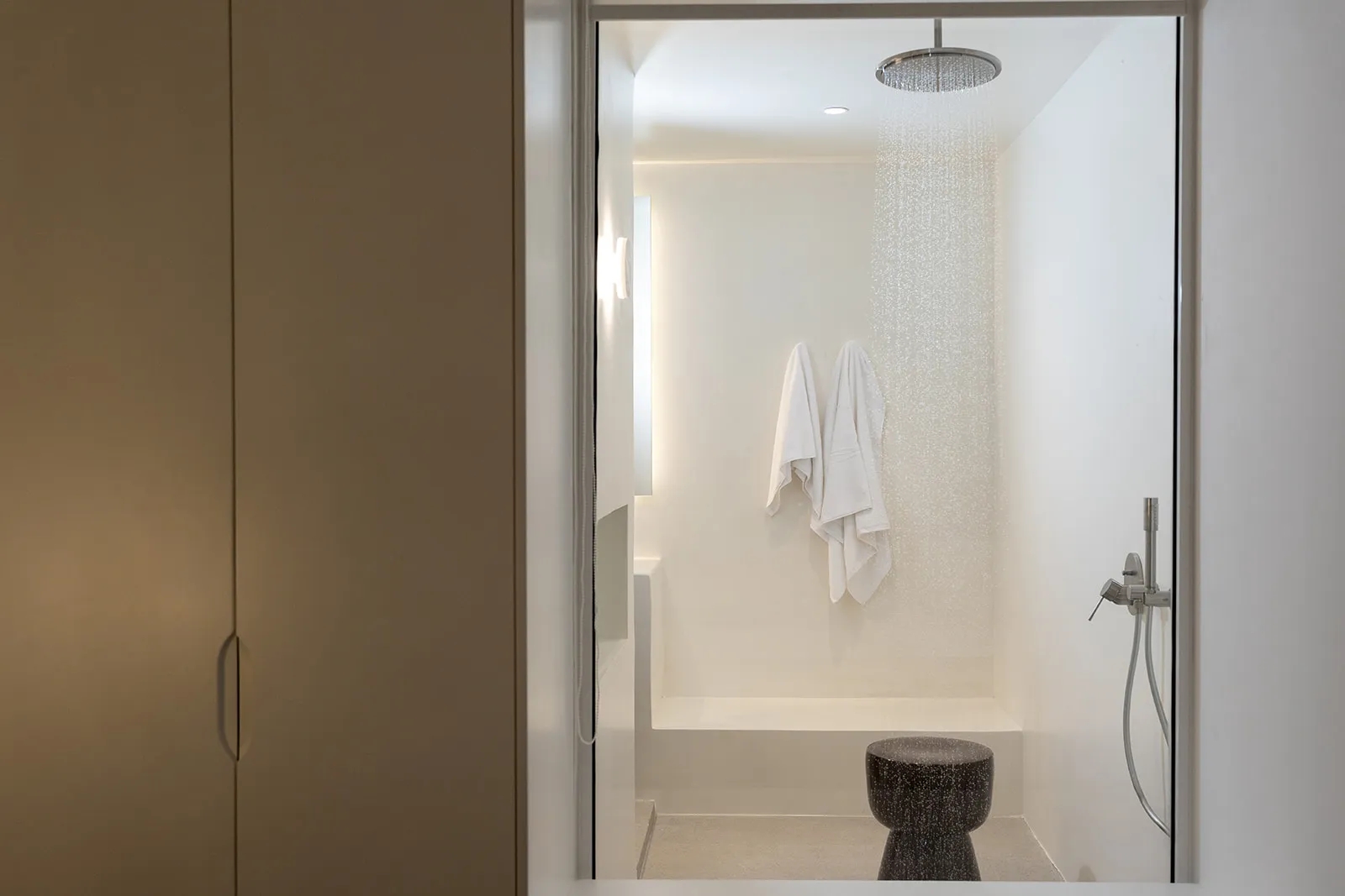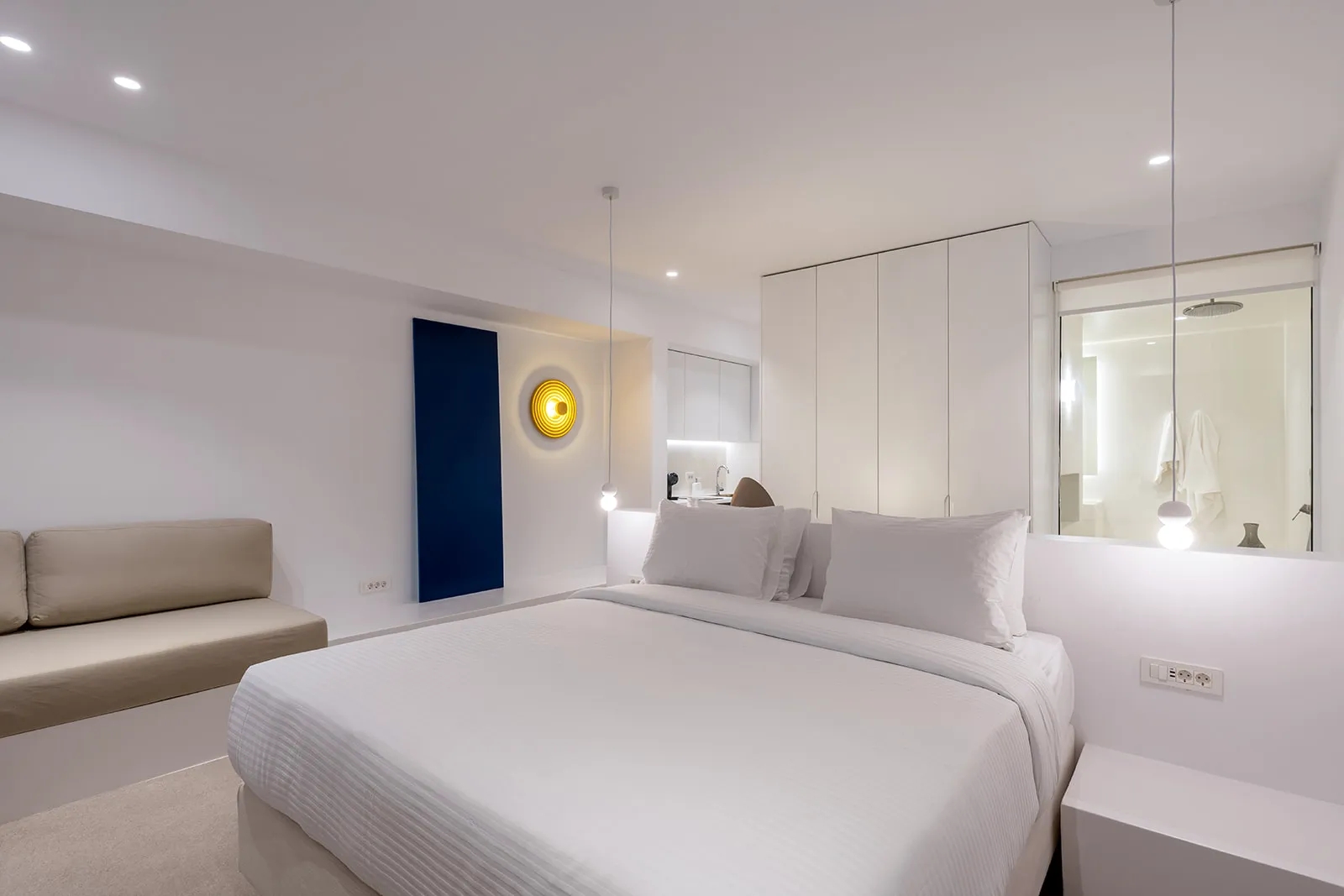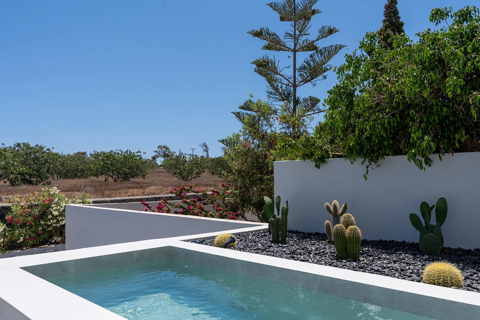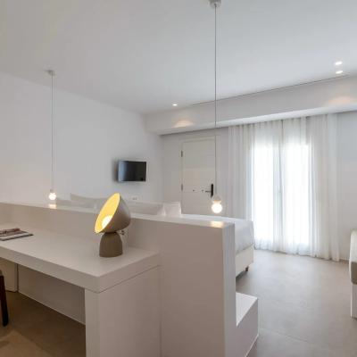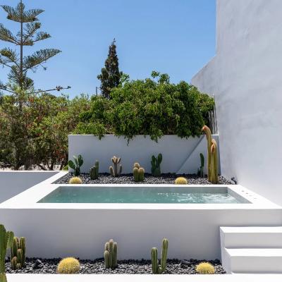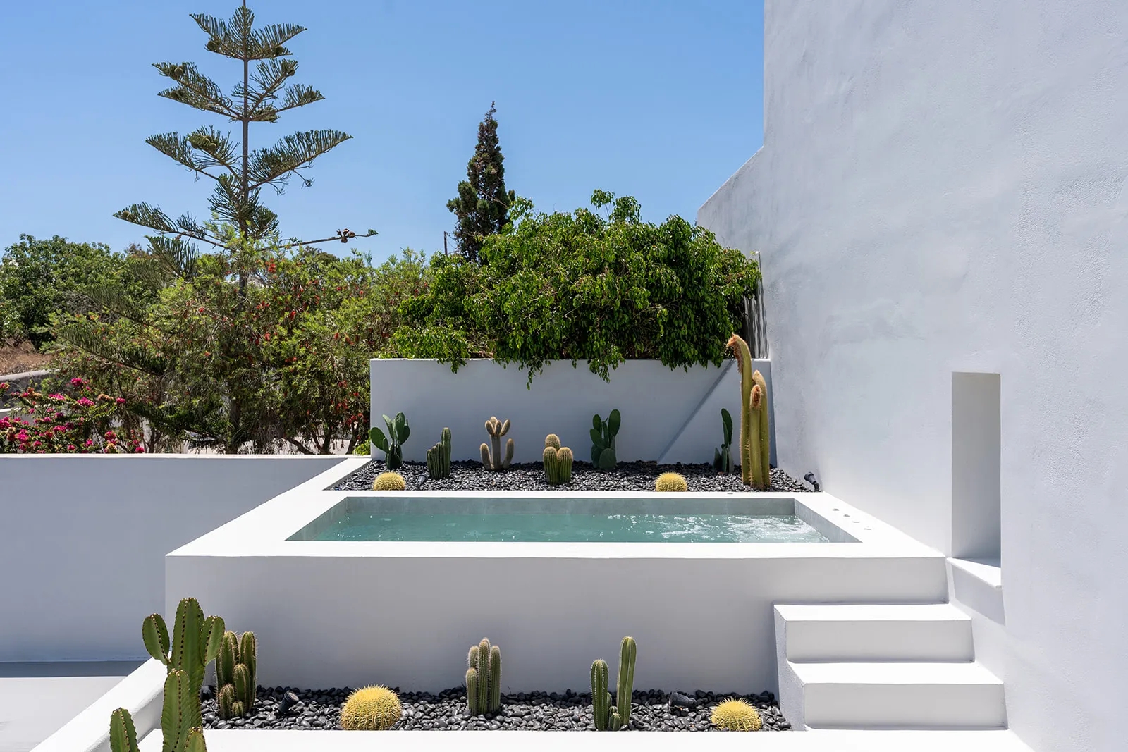 The Junior Apartment with Hot Tub of Lilium Homes is a stylish and cozy retreat, designed for couples seeking comfort. Featuring an open-plan bedroom with a comfortable sitting area, a modern bathroom, and a fully equipped kitchen, the apartment combines functionality with elegant design. Step outside to your private-use patio, where a relaxing outdoor hot tub awaits, offering inner courtyard views and a peaceful atmosphere. Ideal for up to 2 guests, this apartment creates the perfect setting for a tranquil Santorini escape.